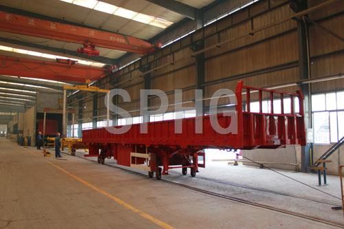 半掛車生產(chǎn)線采用滾輪生產(chǎn)方式,生產(chǎn)過程中減少了行車的使用頻率,降低產(chǎn)品的生產(chǎn)時間,提高了工作效率,增加安全系數(shù)。對半掛車的工藝布局進(jìn)行合理的規(guī)劃,結(jié)合用戶的實際需求設(shè)計制造工裝、夾具及專用焊接設(shè)備。