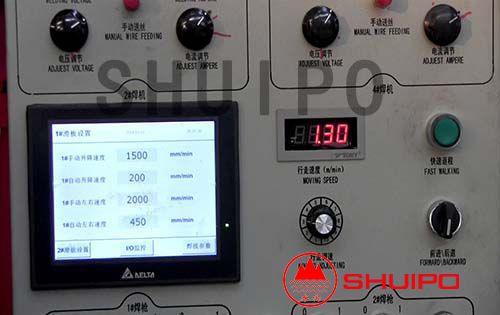本機(jī)采用先進(jìn)的PLC可編程控制技術(shù)、微電子技術(shù),焊接速度達(dá)到2m/min,能在同一工件上一次焊接兩條水平相對的焊縫,工作效率是傳統(tǒng)設(shè)備的兩倍以上;采用了可靠靈活的柔性自動(dòng)仿形技術(shù),實(shí)現(xiàn)自動(dòng)跟蹤,避免了對變截面部分補(bǔ)焊的缺點(diǎn);雙弧雙絲送絲機(jī)構(gòu),確保了批量生產(chǎn)過程中穩(wěn)定的焊接成型,避免了薄板焊接時(shí)穿透現(xiàn)象。