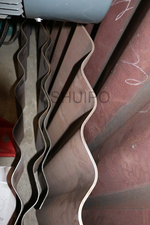 波紋板成型機(jī)主要分為機(jī)架、驅(qū)動部分、上壓輪、下壓輪、進(jìn)料導(dǎo)向機(jī)構(gòu)、以及前后工作臺,波紋板成型機(jī)是通過同時旋轉(zhuǎn)的上、下壓輪,將平板加工成波紋狀,成型效果一致性好,效率高,波紋的高度調(diào)整有電機(jī)驅(qū)動,通過操作控制箱上的按鈕調(diào)整波紋高度范圍,調(diào)整方便,性能可靠。