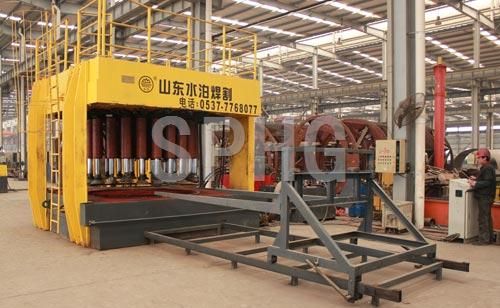 漲形機(jī)是水泊焊割(SPHG)在積累了多年的焊接工藝和設(shè)備調(diào)試技術(shù)并吸收國外先進(jìn)技術(shù)的基礎(chǔ)上自行開發(fā)、研制的一款封頭漲形專用設(shè)備。它是利用我們常見和常用的液壓系統(tǒng)制動(dòng)液壓缸,利用模具把工件壓緊,通過高壓水機(jī)往模具里注水來完成漲形的。