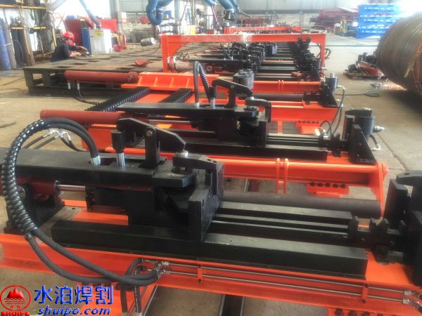 可同時(shí)加工兩件大梁,兩側(cè)互不干擾;鵝頸處可直接壓彎成型;翼板、腹板可隨意調(diào)節(jié);配有大梁升降輸送滾輪。